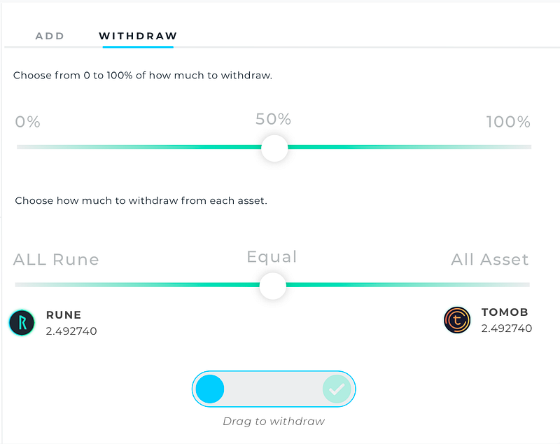 They can also set any amount of partial withdrawals, such as 0.42 which is 60% in the token and 40% in Rune.
