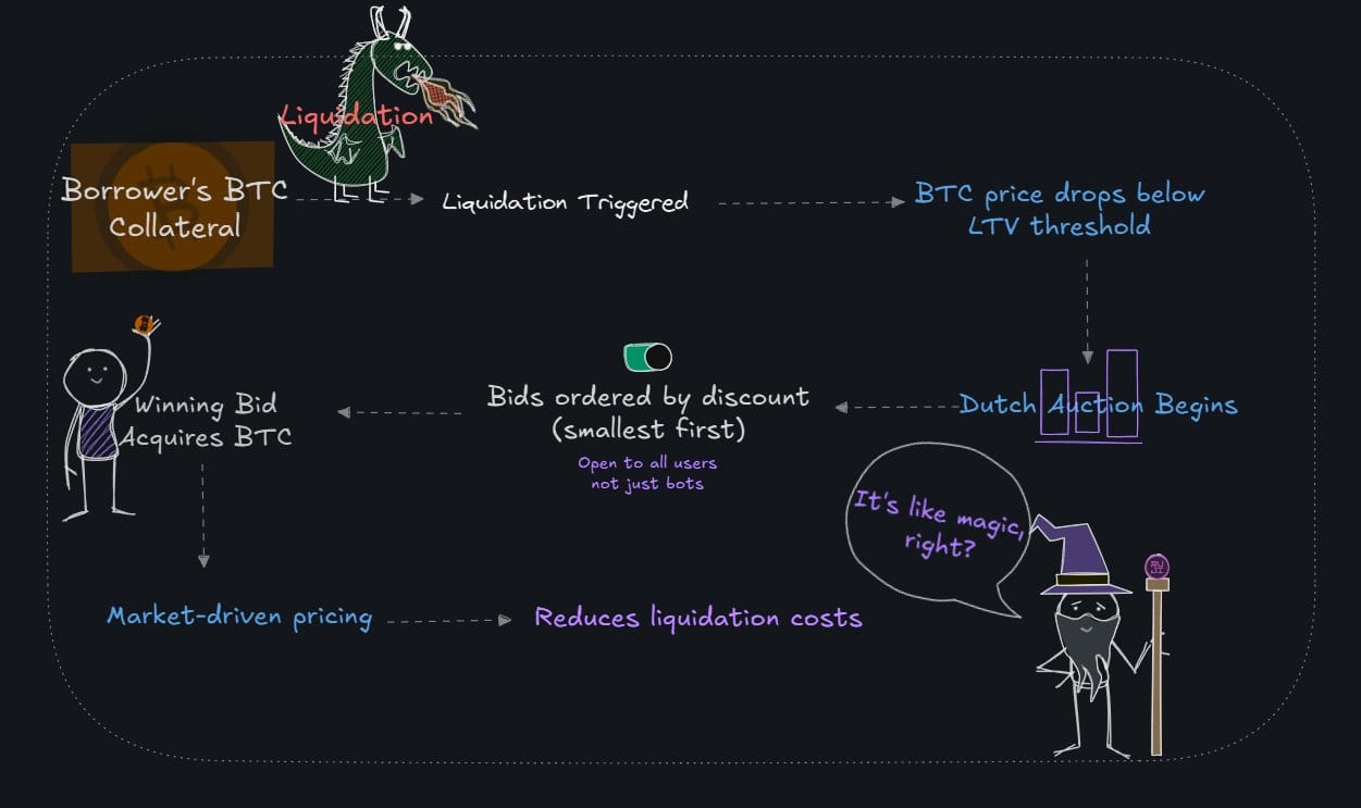 When a position becomes undercollateralised, liquidations are triggered automatically. Collateral is sold through onchain markets to repay outstanding debt, and any remaining value is returned to the user.