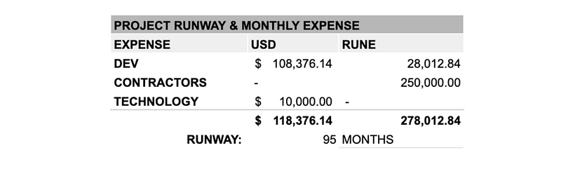 The treasury comprises of $19m USD liquid and $38m in RUNE, total of $57m.