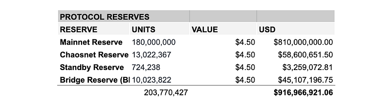 The Protocol Reserves total 203,770,427 RUNE, worth $920m. These are allocated for Chaosnet & Mainnet emissions, as well as community campaigns.
