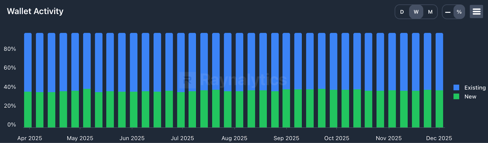 Zooming out on the weekly view across the past six months, volume remains broadly consistent but sits below summer levels, reflecting the combined impact of market conditions, fee experimentation, and recent technical challenges.