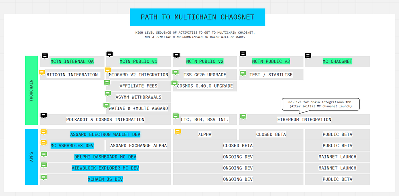Work continues to optimise & improve multichain in addition to finalising the feature set above; notably native RUNE which will become available in the next release. The high level roadmap is available on Miro for review and is subject to change.