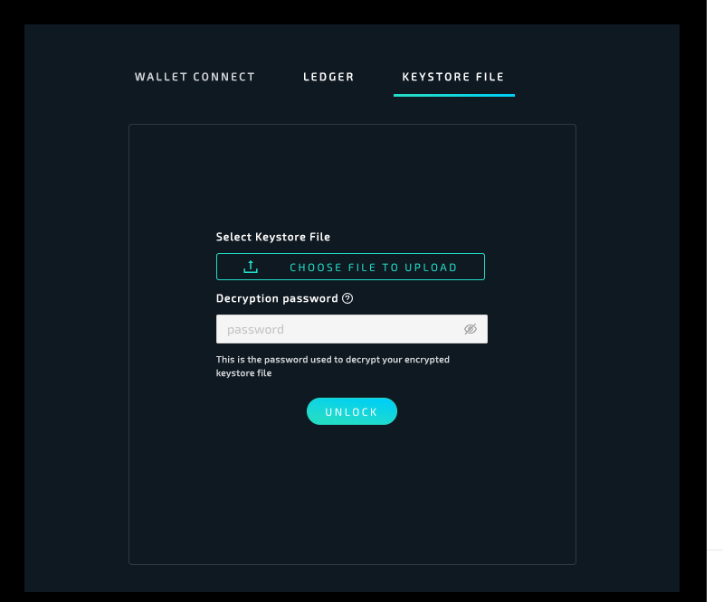 Choose the Keystore option for connecting to the wallet and upload.