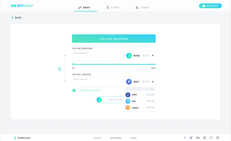 BEPSwap is THORChain’s first go-to market product, built on a statechain to Binance Chain. BEPSwap was intended to only support BEP2 assets to minimise complexity with external chains.